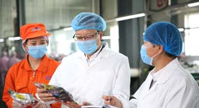 炒制牛肉制品的組合烘干箱、給袋式真空包裝機、機器人碼垛機等一系列具有開創性的設備